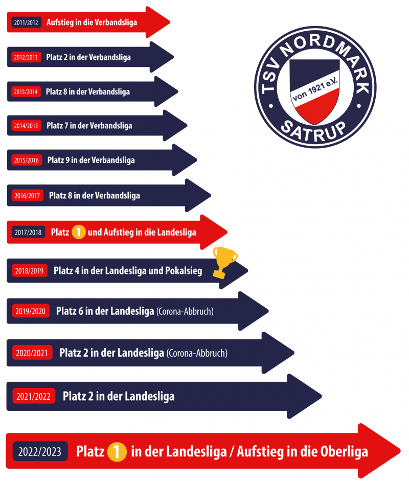 Der TSV Nordmark Satrup hat sich in den letzten zehn Jahren kontinuierlich weiterentwickelt. Seit dem Aufstieg in die Verbandsliga gehören wir zu den Spitzenteams der jeweiligen Spielklasse.